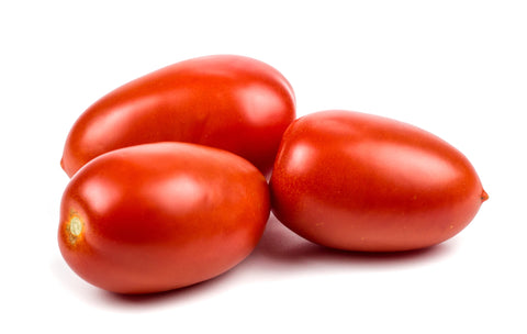 These plum-shaped tomatoes are firm and fleshy with fewer seeds and low water content, which makes them ideal for making sauces and pastes. They have a slightly sweet, concentrated tomato flavour.