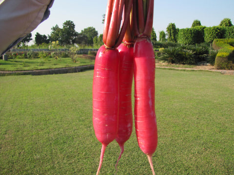 A little more pungent and sharp than the white radish varieties in India, full red radish is packed with nutrition and taste. What gives this radish a deep red hue is the presence of anthocyanins which possess potential pharmaceutical ingredients.