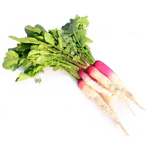 Appropriately named, half red radish is bright red on the top half and snowy white on the bottom half. It is uniquely oblong and makes for a pretty sight. Packed with nutritional properties, it is rich and delicate in flavour and texture.