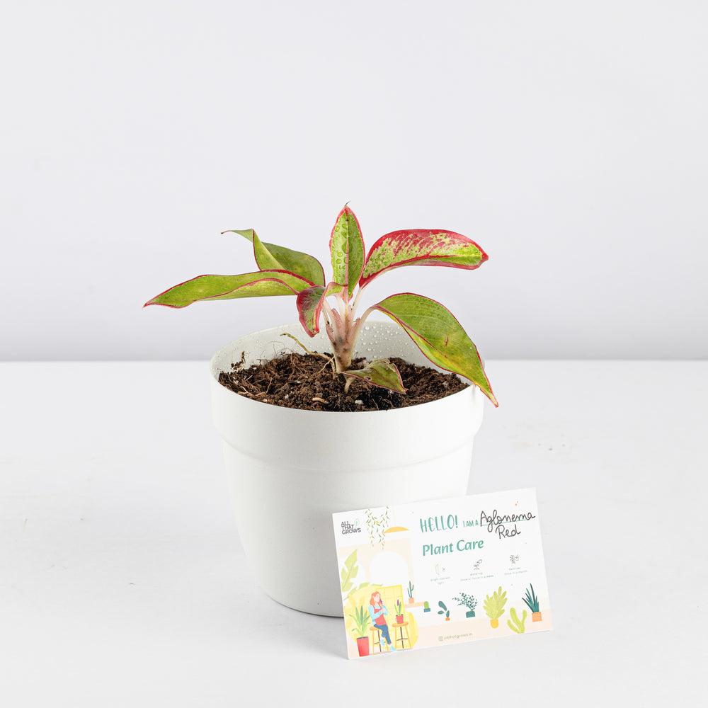 The Aglaonema Red Plant, with its striking red and green foliage, adds a vibrant splash of colour to any indoor space. The leaves are broad, glossy, and intricately veined, creating a lush tropical appearance that enlivens dull corners. Known for its air-purifying abilities, this plant helps filter toxins, improving indoor air quality while requiring low upkeep. Ideal for enhancing home aesthetics, it also reduces stress and promotes a calming environment.