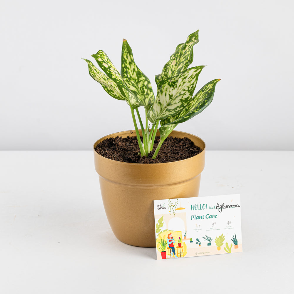 The Aglaonema White Plant is a stunning indoor plant known for its lush green leaves splashed with striking white variegation, creating a refreshing and contemporary vibe. This easy-to-maintain plant acts as a natural air purifier, enhancing indoor air quality by filtering toxins. It adds a calming touch to interiors and pairs beautifully with modern decor. Perfect for busy individuals, it requires minimal care and rewards its owners with vibrant, healthy foliage year-round.