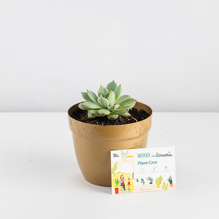 Echeveria succulents are known for their rosette-shaped clusters of thick, fleshy leaves that range in shades of blue-green, with some varieties having subtle pink or red edges. Their compact size and vibrant colours make them an attractive addition to any indoor space. This hardy plant not only adds a modern touch to your home decor but also purifies the air, making it a great choice for improving indoor air quality. Easy to care for and resilient, the Echeveria is a delightful and beneficial companion for any space.