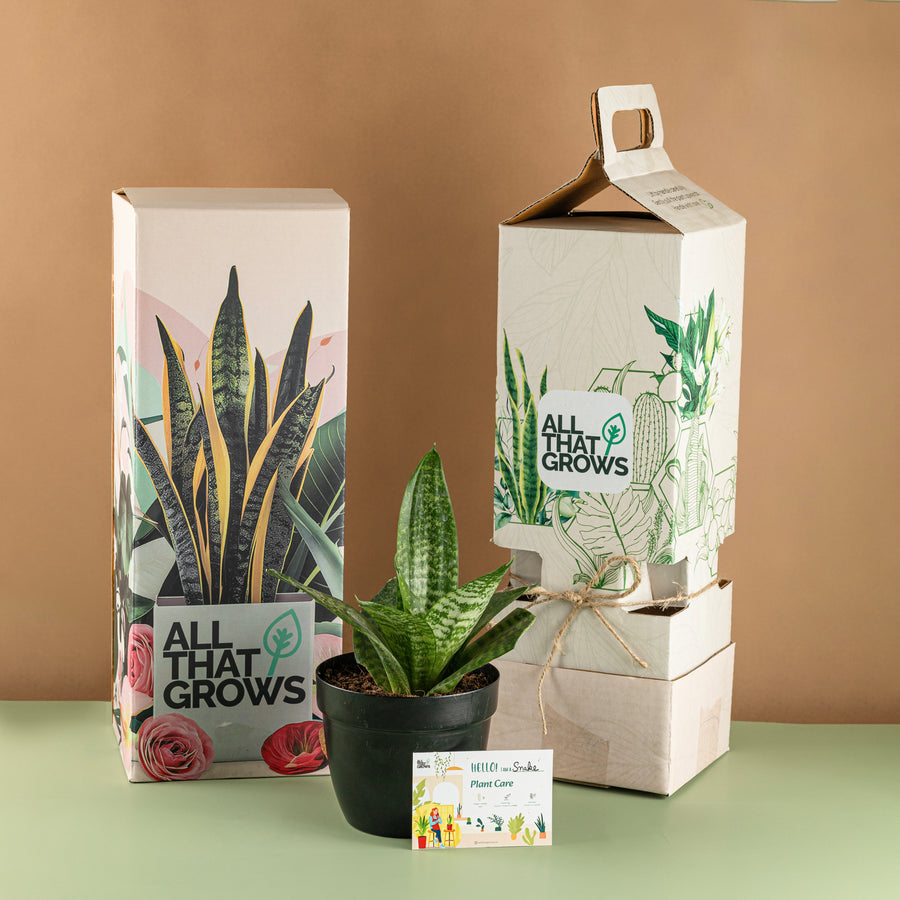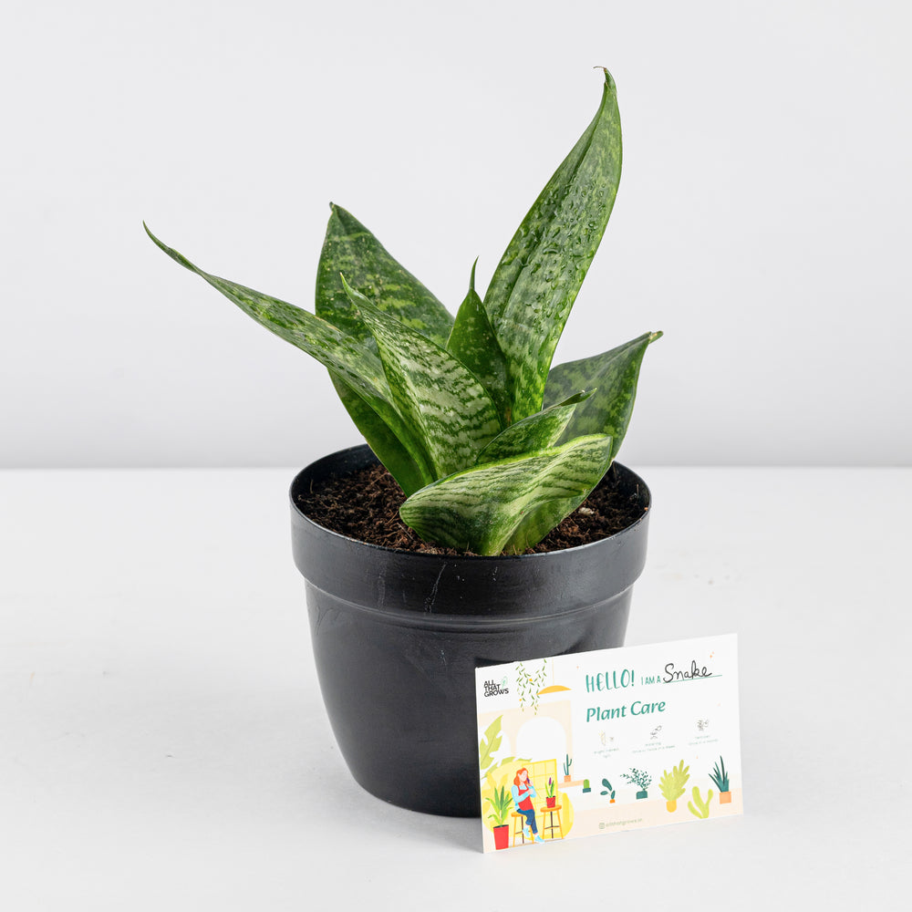 The Green Sansevieria Snake Plant features tall, upright sword-like leaves that display elegant shades of green with variegated patterns, giving it a striking yet minimalist aesthetic. Known for its ability to purify air by removing toxins such as formaldehyde and benzene, it improves indoor air quality and promotes a healthier living environment. This hardy plant is low-maintenance, thrives in a variety of light conditions, and can tolerate neglect, making it perfect for busy or new plant parents.